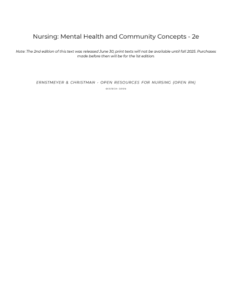 Nursing: Mental Health and Community Concepts – 2e